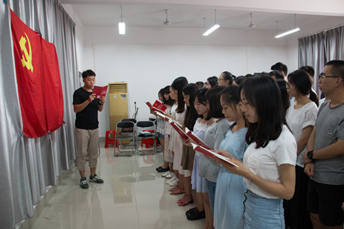 支部开展“坚定理想信念,不忘初心跟党走”主题党日活动 毕业生党员朗诵党章 开展党组织关系转接工作的理论与实务培训工作 开展优秀毕业生党员先进事迹报告会和经验交流会