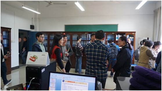 会后一行还到地球科学学院资料室进行参观和学习,并就资料的准备、归档和规范性等方面的工作与负责的时毓老师进行了交流。