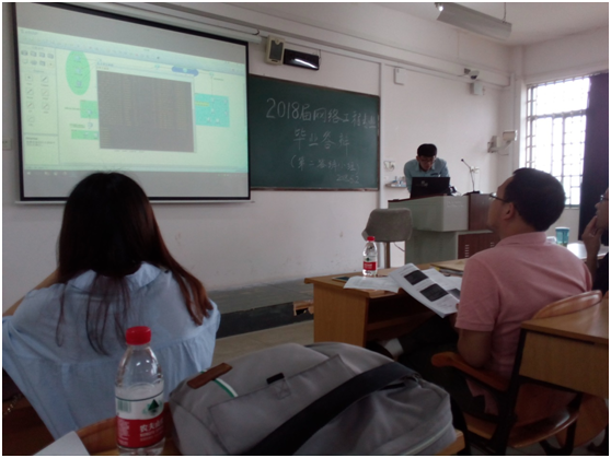 2018年6月2日,学院网络工程专业毕业生答辩会在雁山校区第五教学楼顺利举行。答辩会以四个小组、分四个会场进行,共82名毕业生参加了本次答辩。网络工程教研室从场地安排、氛围营造、答辩程序等方面进行了精心而规范化的安排,全体毕业论文(设计)指导教师参与了本次答辩,并且为进一步提升毕业论文(设计)质量,特聘请了桂林电子科技大学副教授张敬伟博士和桂林顶鑫信息技术有限公司赵磊总经理参与本次答辩会。 答辩会上,毕业生们通过PPT、设计作品、实物模型等形式向专家陈述并展示了自己的毕业设计(论文)成果,对研究的目的、思路及方法进行了详细说明。答辩老师以认真严谨的态度,肯定学生设计(论文)中的闪光点和创新之处,对设计(论文)存在的问题提出了改进建议,并参照评分标准对学生的答辩情况进行了严格评分。整个答辩过程程序规范,井然有序。 从答辩情况来看,全部学生论文质量和答辩情况都达到本科毕业设计(论文)的要求,答辩会圆满结束。