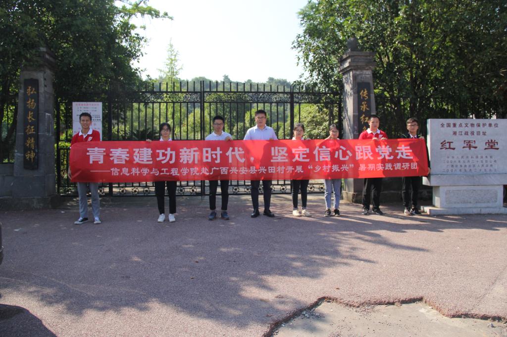 7月18日于兴田村,我院赴广西兴安县界首镇兴田村暑期社会实践团在界首镇政府领导和兴田村村干部的大力支持下顺利开展了各项实践工作。 上午时分,实践团成员抵达红军堂,近距离了解湘江战役的感人历史,感受红军英勇抗争的不屈精神,并以一曲《歌唱祖国》致敬先烈。临近中午,团队有幸采访了界首镇党委书记和镇长,会上陈健书记和成员们畅谈了界首镇的历史变迁及未来的发展规划,并希望大学生社会实践团帮助他们深度挖掘身边优秀党员、卓越创业者等先进人物事迹。 下午时分,实践团成员在兴田村村干部的带领下到达当地的小学开展爱心捐赠活动,成员给孩子们演示了无人机的操作,活动现场氛围热烈,之后成员向孩子们捐赠了铅笔、橡皮及本子等一系列文具。 在兴田村村干部的大力支持和成员们辛勤付出下,实践团的各项工作有序顺利进行,最后一日的实践工作圆满结束。