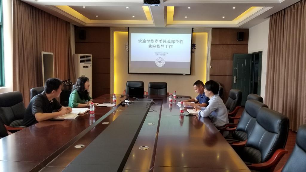 6月24日上午,学校党委常委、统战部部长邱杰一行到我院专题调研统战工作。我院党委书记于海平、党委副书记刘志丽、党建工作负责人参加调研活动。