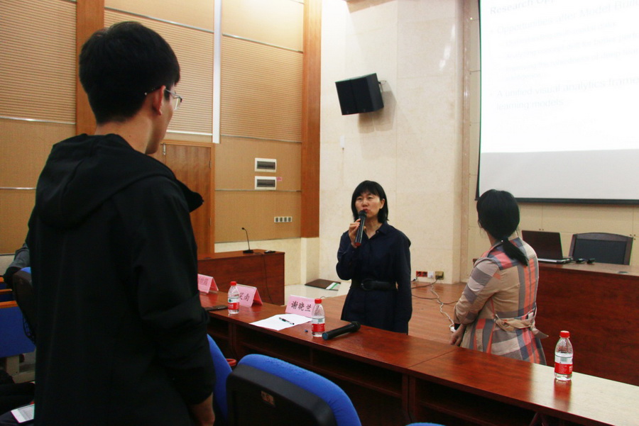 应我院邀请,9月25日下午清华大学软件学院长聘副教授刘世霞副教授,桂林电子科技大学计算机与信息安全学院蓝如师教授分别在我校雁山校区萃华楼学术报告厅做了题为“基于可视分析的可解释机器学习”和“基于深度网络的双尺度去雨方法研究”的学术报告。报告会由信息学院院长谢晓兰教授主持,信息科学与工程学院师生共约200人参加了报告会。 可解释的机器学习旨在使机器学习模型的决策过程对研究人员和从业人员更加透明,从而实现人机的有效沟通和协作。刘老师的报告介绍他们提出的机器学习模型可视分析框架。该框架跳出传统可视分析“先分析再可视化”的单一方向分析机制,将机器学习方法和交互可视化方法有机地结合在一起,从而更好地帮助用户理解复杂模型及其输出结果,分析、诊断并不断完善机器学习模型。为用户选择、利用及改进机器学习模型提供技术依据。最后,结合具体的应用实例,如集成学习模型和深度学习模型分析等,介绍他们基于该框架研制开发的可视分析技术。 视觉是人类获取外部信息的重要来源,其中图像是视觉信息的重要载体。由于图像采集设备、环境等因素的制约,图像经常受到各种不利因素的影响,其中雨水是一种常见的不可避免的干扰。如何去除图像上面的雨水,引起了越来越多的计算机视觉、图像处理领域专家学者的关注。蓝老师首先利用双尺度分解图像,然后利用深度网络分别对背景和目标部分去除雨水影响,在视觉效果和量化指标上都获得较好的结果。 报告会结束后,刘老师和蓝老师回答了在场的师生的提问。本次报告会对扩大我院研究生的视野,培养研究生的科研思维具有积极的意义。 图1 刘世霞副教授作报告