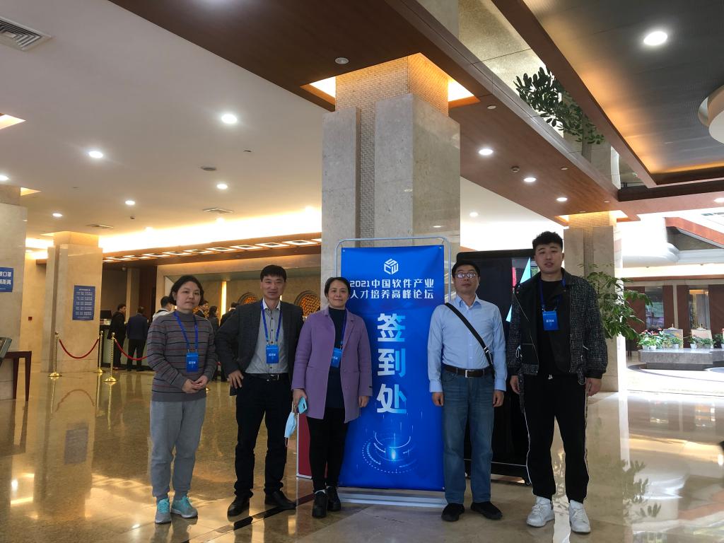 3月26-28日,2021中国软件教育产业人才培养高峰论坛在南京召开。论坛由中国软件行业协会主办,西普教育独家承办。来自全国各地的知名专家、教育学者、高校负责人、企业精英等约800人共聚一堂。会议围绕如何全面提高软件工程专业人才培养质量和教学质量,有效促进各高校软件工程专业专家、学者和教师之间的沟通与交流,大家以教育热点问题为线索,就“关于推动面向产出的教学改革”、“通用标准解读”、“优秀专业认证交流”等相关主题进行深入探讨。西普教育董事长王建受邀出席。我院院长谢晓兰一行5人参加此次论坛,对促进我院软件工程专业建设具有积极意义。