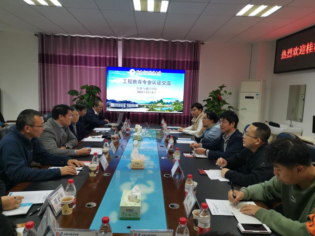 11月4日,由学院党委书记江云清、院长谢晓兰带队,学院工程教育专业认证工作小组相关工作人员一行8人前往桂林电子科技大学信息与通信学院开展专业认证工作调研。 桂林电子科技大学信息与通信学院李海鸥院长、刘庆华副院长等领导和相关教师热情接待了我院一行。李海鸥院长首先向我院详细地介绍了信息与通信学院基本情况及专业认证工作开展情况,刘庆华副院长就微电子科学与工程专业接受工程教育认证专家组线上考查工作流程等作了详细介绍,并具体分享了线上考查的工作经验,解答了我院教师提出的有关问题。 谢晓兰院长介绍了我院计算机专业开展专业认证准备工作情况,并代表我院对信息与通信学院各位领导所分享的宝贵工作经验表示由衷的感谢,并诚挚邀请各位适时到我院指导交流,不断深化兄弟院校间的交流与合作。 专业认证工作调研交流会现场
