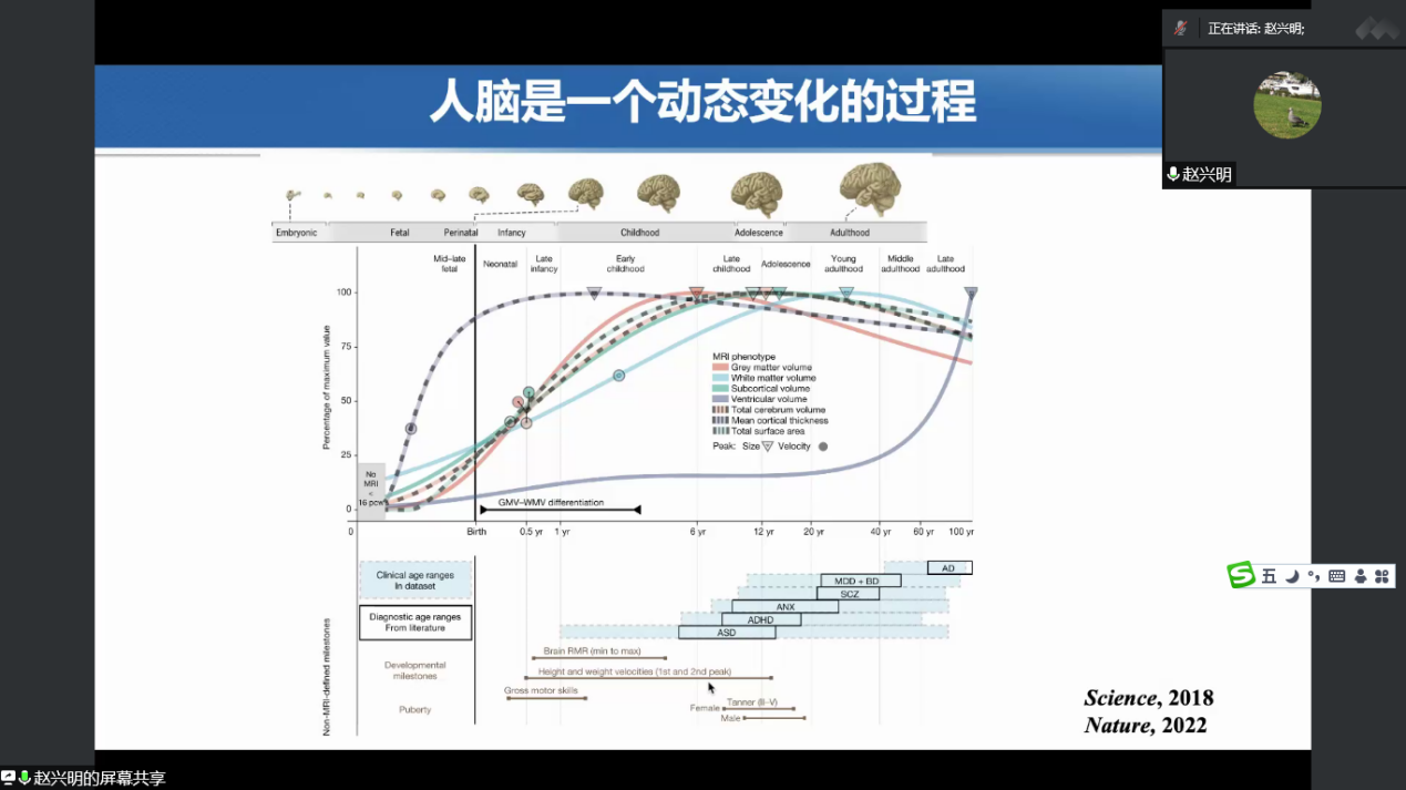 近些年随着脑科学与信息科学技术的紧密结合,学院邀请到复旦大学类脑智能科学与技术研究院教授,计算神经科学与类脑智能教育部重点实验室副主任、张江国际脑库执行主任、上海市青年科技启明星和上海市浦江人才计划入选者赵兴明教授就数据驱动的人脑发育及相关疾病探索为题,阐述了在大数据时代,数据正成为理解大脑、阐述脑疾病发生机制和发展类脑智能的关键,也逐渐成为脑科学研究的基石。在他的报告中,从不同尺度的数据出发,介绍我们在大脑的细胞组成、调控大脑功能的基因、脑疾病的遗传和微环境因素等方面的研究进展。