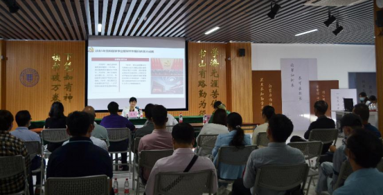 王玫副校长从党的二十大主题、主要成果、起草过程等方面介绍了党的二十大精神,用“3—16—4”三个数字概括介绍了过去五年的伟大成就及十年来伟大变革,对马克思主义中国化时代化、中国式现代化、全面建设社会主义现代化国家、全面从严治党等方面进行了宣讲。