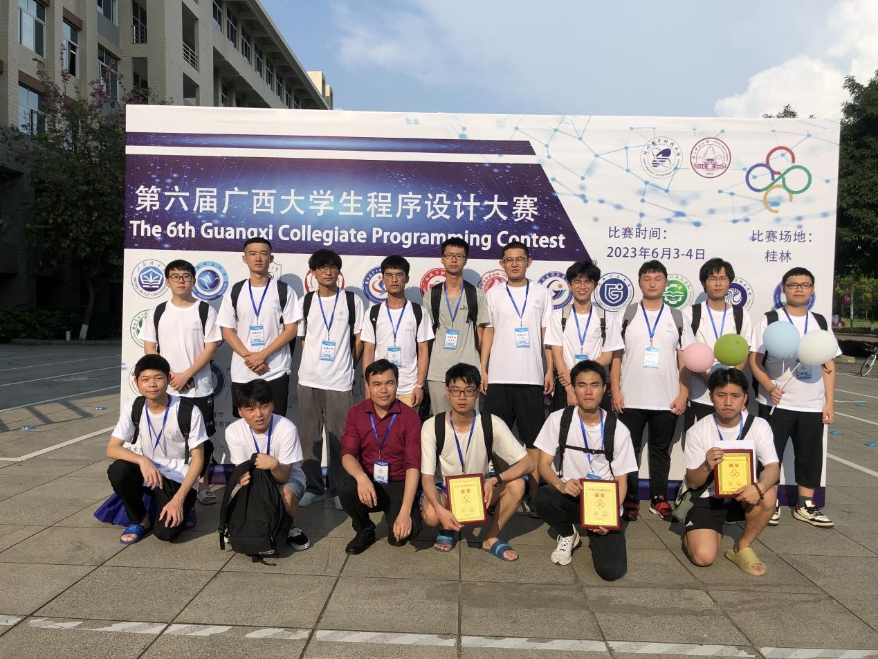 6月3日至4日,第六届广西大学生程序设计大赛暨中国-东盟国际大学生程序设计竞赛分别在桂林电子科技大学和广西师范大学两个赛点同步举行,来自区内外的44所高校的161支队伍参加本次竞赛的角逐。我校信息科学与工程学院选派18名学生,组成6支队伍代表学校参赛,在5个小时的竞赛过程中,我校队员沉着冷静、积极思考、力争上游,认真完成全英文赛题,最终夺得银奖3项。 广西大学生程序设计大赛(GuangXi Collegiate Programming Contest,简称GXCPC)由广西区教育厅主办,广西高校计算机类专业教学指导委员会协办,中国大学生程序设计竞赛委员会(CCPC)提供技术支持,旨在激励当代大学生运用计算机编程技术和技能解决实际问题,激发其学习算法和程序设计的兴趣,培养其团队合作意识、创新能力和挑战精神。 自2018年起,我校学子已连续6年参加该项赛事。通过以赛促教、以赛促学,极大激发了学生加强专业学习和参加学科竞赛的热情,促进了学生实践动手能力和创新能力的持续提升。 竞赛队伍合影