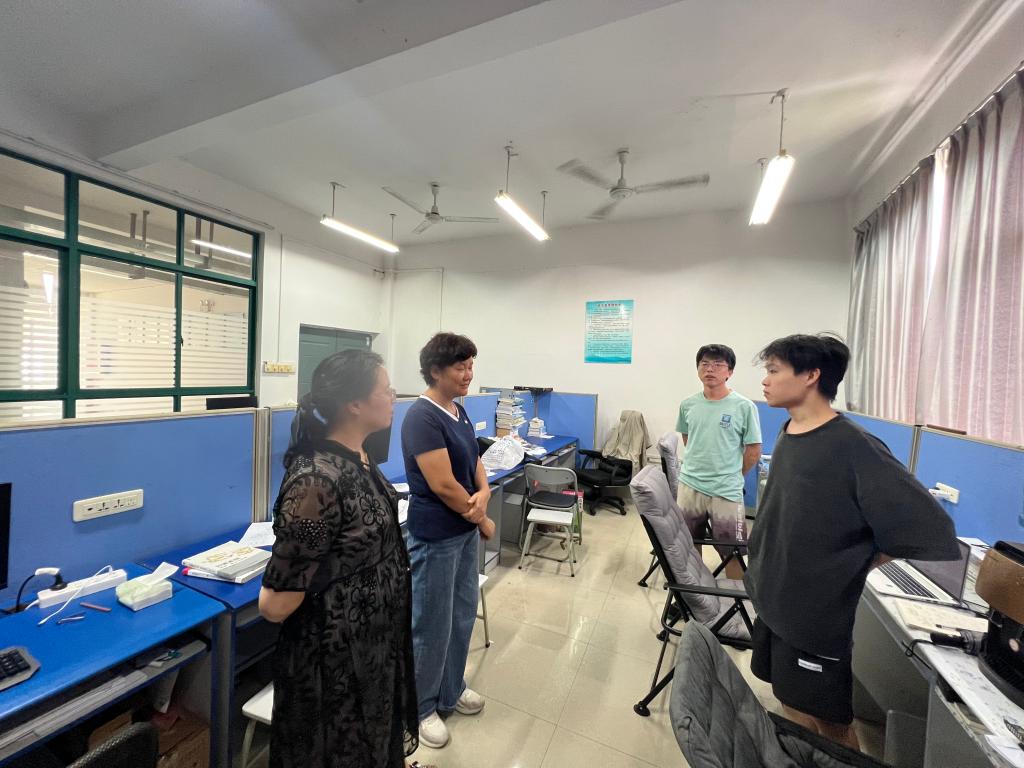 为全面了解我院各项工作情况,确保2023年秋季学期开学工作平稳有序推进,开学第一周,学院领导班子成员深入课堂、教研室、实验室、研究生工作室和学生宿舍等,详细了解新学期教学准备、安全稳定、学生返校等工作情况。走访中,大家与教师探讨如何持续推进教育教学改革和学风建设,了解新学期学生思想状况及学习、生活情况,实地察看教学场地、教学设备运转、实验室安全等情况。 下一步,学院将进一步树牢“大安全”理念,压紧压实责任,落细落实举措,全面排查整治各类安全隐患,提高防范化解风险能力,切实抓好政治安全和校园稳定工作,努力为师生营造安全和谐的学习工作环境。 检查现场1 检查现场2