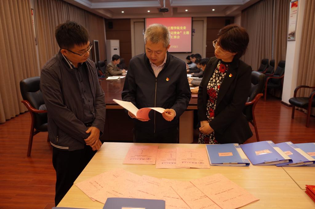 督察组组长李继兵审阅、检查学院主题教育工作资料