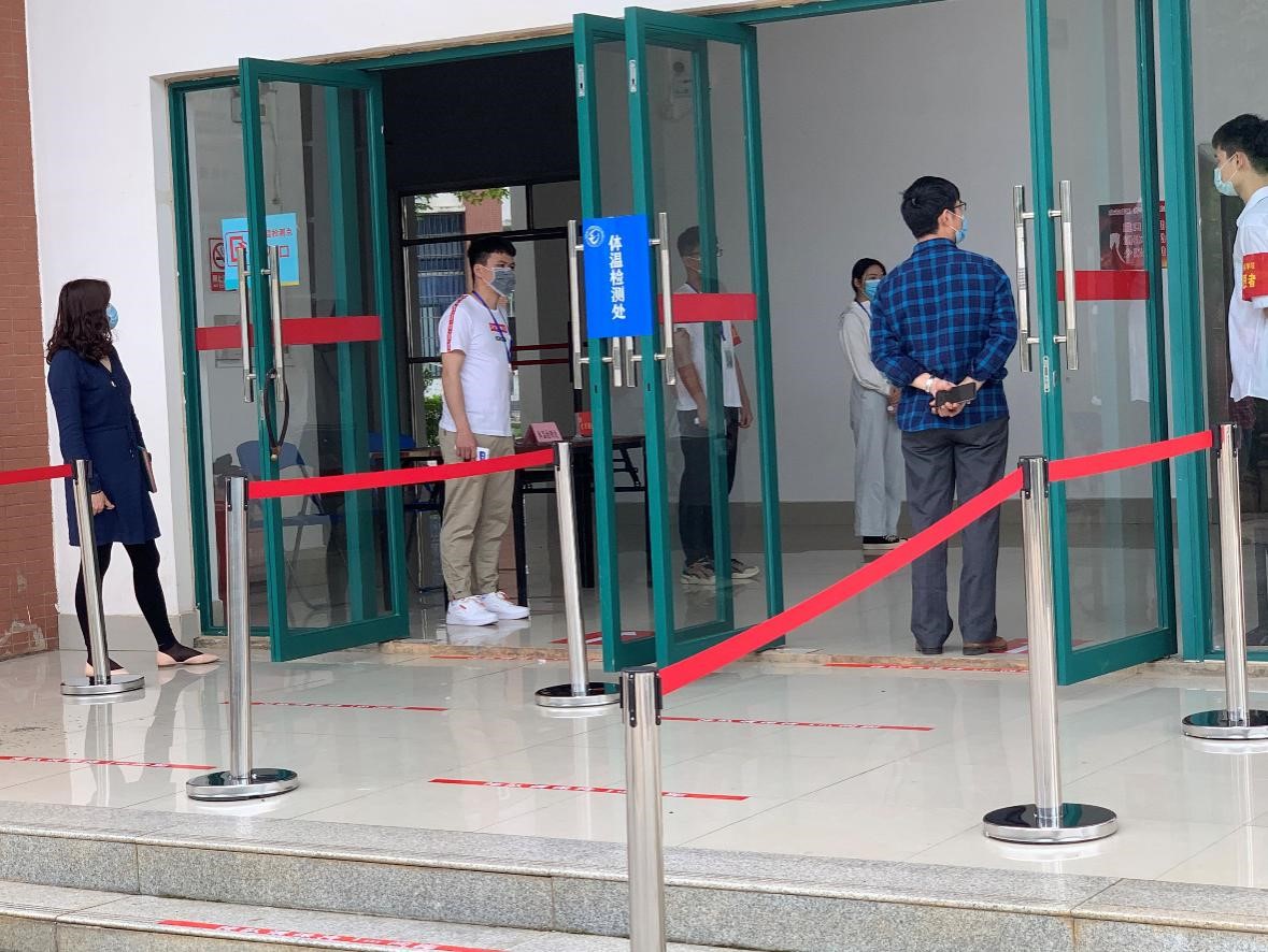 为充分做好此项工作,430日下午,学院领导班子成员实地检查了出入口布置工作,并指导党员志愿者们做好体温监测工作。学院院领导对如何按要求做好值守工作提出了明确要求,同时再三叮嘱党员先锋岗志愿者们要严格把好出入口,认真细致地做好体温检测工作,同时也要做好个人防护与防疫物品消毒,要做好每天交接班工作,确保本项工作顺利完成。
