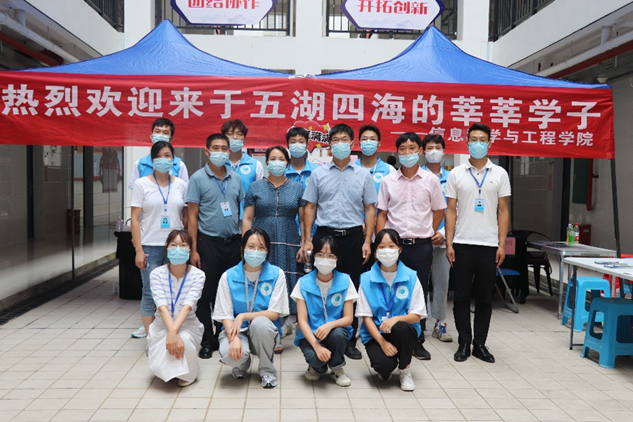 为进一步增强党的思想引领力,提高大学生党员担当意识和服务能力,大力弘扬“奉献、友爱、互助、进步”的志愿服务精神,学院党委汇聚先锋力量,组成大学生党员防疫先锋队,设置党员迎新志愿服务岗,有力确保新生正常入学,充分发挥党员先锋模范作用。学院党委书记江云清、院长谢晓兰、党委副书记宋玉辉、副院长董明刚等学院领导亲临迎我院各个迎新接待点,指导迎新工作,并对党员先锋岗志愿服务工作提出指导意见。 践行初心,勇担先锋。我院100多名学生党员积极报名参加迎新活动,活跃在学校食堂迎新点、新生宿舍楼栋等场所,主动为学生搬运行李,开展行李消杀、证件查验等工作。炎炎夏日,学生党员们始终秉承着“创先争优树旗帜,服务奉献做表率”的宗旨,充分发扬“不怕苦、不怕累”的精神,以饱满的精神状态顺利完成了迎新志愿服务工作任务,用实际行动践行初心、彰显担当。 本次迎新工作中,党员先锋队志愿者们以真诚微笑服务践行着党员宗旨,用奉献担当谱写了青春华章,充分展现了面对疫情,大学生党员敢于冲锋、勇于担当的奉献精神。 学院领导现场指导迎新工作 学生党员在岗位工作 党员志愿者助力新生入学 党员志愿者为新生搬运行李