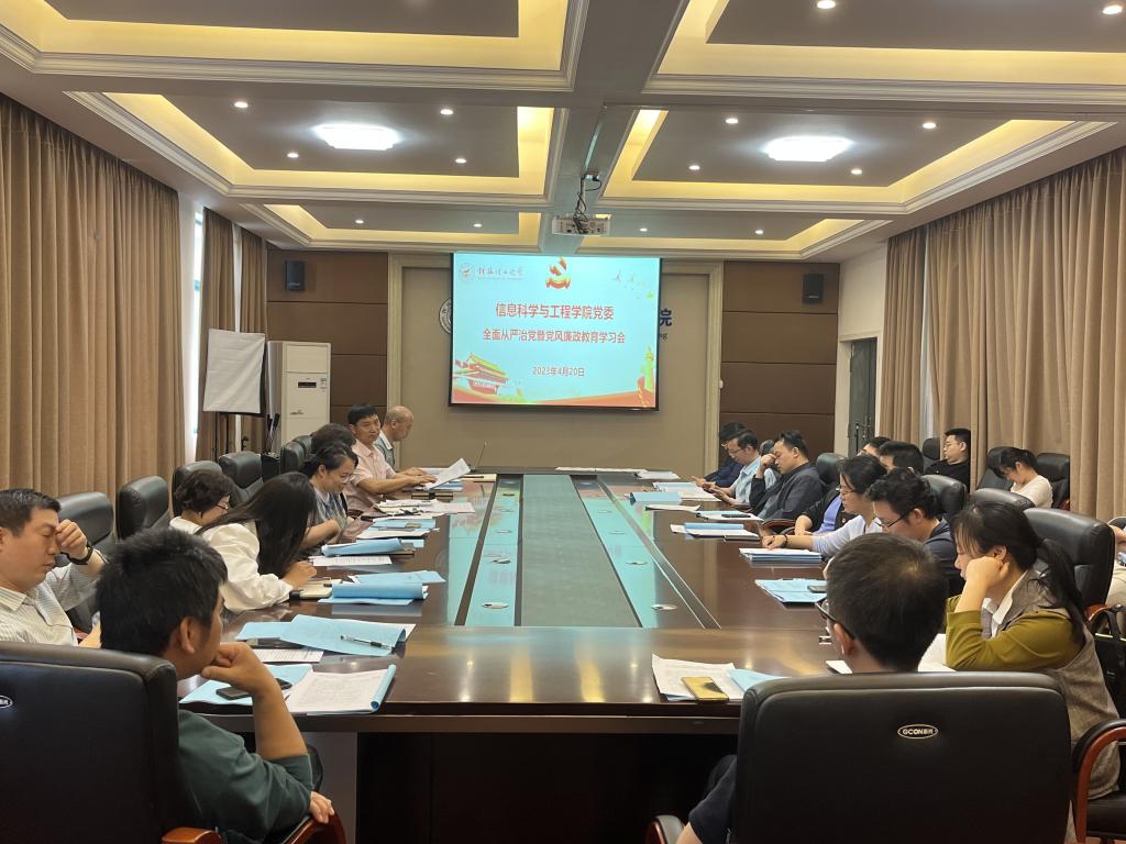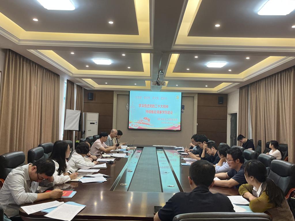 4月20日,学院在雁山校区立信楼02507会议室召开全面从严治党暨党风廉政教育学习会,学院党委委员、纪委委员、各党支部书记、教研室和实验室负责人及师生党支部书记参加会议,会议由学院党委书记熊英主持。 会议传达了习近平总书记在二十届中央纪委二次全会上的重要讲话精神、自治区纪委十二届三次全会、2023年全区教育系统全面从严治党暨全面深化清廉学校建设工作部署视频会及学校2023年全面从严治党暨全面深化清廉学校建设工作会议精神。 会上,熊英书记以《学深悟透党的二十大精神,持续推动清廉学院建设》为题,围绕“廉政建设与腐败问题”“认清新时代反腐败斗争形势”“加强自身修养、廉洁履职尽责”三方面内容讲授了专题党课,希望全院教职工在新时代新征程上,要坚定理想信念,牢记初心使命,谦虚谨慎,清正廉洁,同心同德,奋楫笃行,为学院高质量发展营造风清气正的政治生态。 会议还通报了教育系统近期发生的违纪违法案例,观看了警示视频,并对2023年学院全面从严治党工作进行了部署和安排。 会议现场 熊英书记作廉政教育专题党课