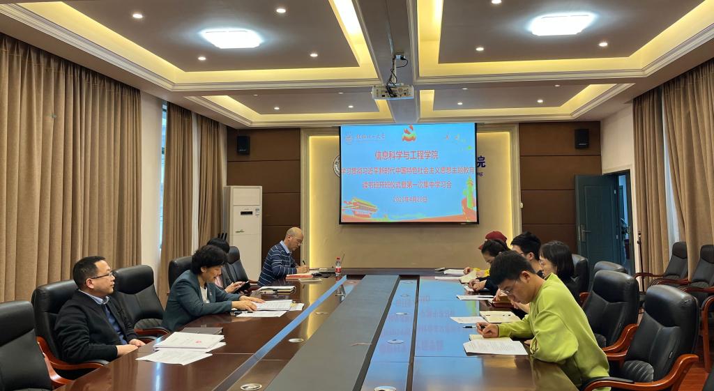 4月28日,学院在雁山校区立信楼02507会议室召开学习贯彻习近平新时代中国特色社会主义思想主题教育读书班开班式暨第一次集中学习会。会议由学院党委书记熊英主持,学院党政领导、党委委员、各党支部书记参加会议。 在读书班开班式上,大家共同观看了习近平总书记在全国学习贯彻习近平新时代中国特色社会主义思想主题教育工作会上的重要讲话视频。熊英对学院开展主题教育及读书班进行动员部署,要求党员干部要学深悟透习近平新时代中国特色社会主义思想,坚持读原著、学原文、悟原理,全面学习领会习近平新时代中国特色社会主义思想的核心要义、精神实质、丰富内涵、实践要求,在深学中提升政治判断力,在常思中提升政治领悟力,在笃行中提升政治执行力,自觉把学习成果转化为改造主观世界和客观世界的强大武器,真正做到以学铸魂、以学增智、以学正风、以学促干。 会上,学院组织员阎安明结合“习近平新时代中国特色社会主义思想的世界观和方法论”学习,就如何坚持好、运用好贯穿其中的立场观点方法武装头脑、指导实践、推动工作,加快学院高质量发展作了主题发言。熊英作了题为《全面理解把握习近平新时代中国特色社会主义思想的科学体系》专题辅导,她指出,学院上下要聚焦全面深入学习贯彻习近平新时代中国特色社会主义思想主题主线,真正做到领导带头学、融会贯通学、结合实际学,做到学全学准、学深学透、学思用贯通、知信行统一,要坚持干中学、学中干,锚定加快学院高质量发展的目标任务,知责于心、担责于身、履责于行。 下一步,学院将牢牢把握“学思想、强党性、重实践、建新功”的总要求,推动理论学习走深走实、入脑入心,不断把学习贯彻习近平新时代中国特色社会主义思想主题教育引向深入,持续推进学院高质量发展实现新突破。 会议现场 熊英书记作主题教育专题辅导