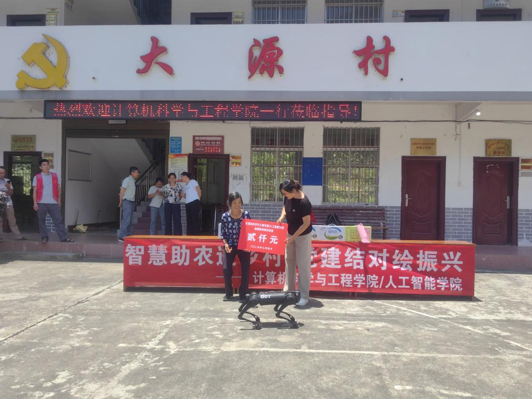 为深入贯彻落实乡村振兴战略,帮助结对帮扶村了解人工智能技术,7月4日,学院党委书记熊英率队赴灌阳县大源村开展人工智能科普讲座和结对帮扶工作,学院党委副书记黎超业、副院长邓酩及党办院办相关人员参加此次活动。 在大源村,熊英一行与驻村工作队、大源村党支部开展了党建工作交流,双方分别介绍了各自党建工作开展情况,并就如何发挥党建引领作用、提升基层治理效能、推动乡村振兴进行了深入探讨。 之后,邓酩为村党支部成员及部分村民代表作了题为“人工智能助力乡村振兴”的专题讲座,深入浅出地讲解了人工智能的基本概念、发展历程及在农业农村领域的应用场景,使村干部和村民们对AI技术助力农业生产的现实意义有了进一步的认识。互动展示环节,机器狗灵活地完成了行走、坐立、握手等动作,让现场人员更直观感受到科技的魅力,对科技赋能乡村振兴充满期待。 讲座结束后,学院还向大源村捐赠了产业发展资金,用于支持当地特色农业项目升级和基础设施完善。同时与帮扶脱贫户进行了沟通交流,详细了解其生产生活状况,并送上慰问金,切实将帮扶落到实处。 党建工作交流 人工智能科普讲座 捐赠产业帮扶资金 捐赠教育帮扶资金 (一审:阎安明;二审:黎超业;三审:熊英)
