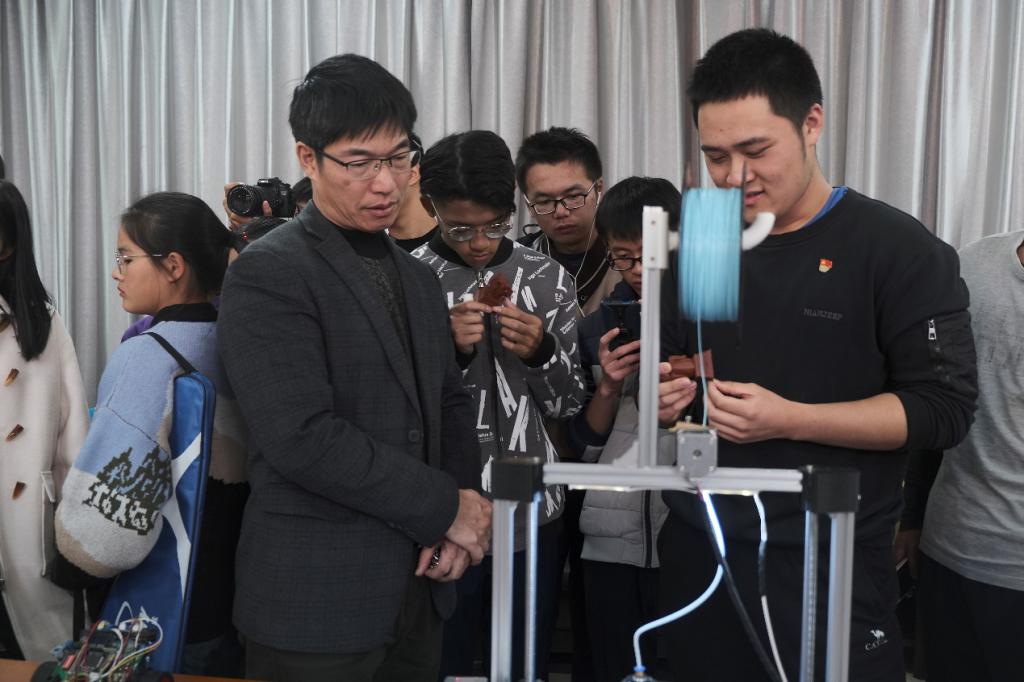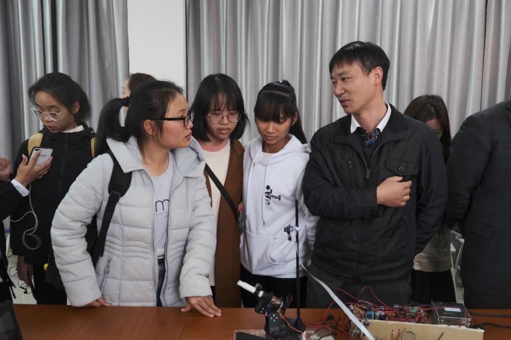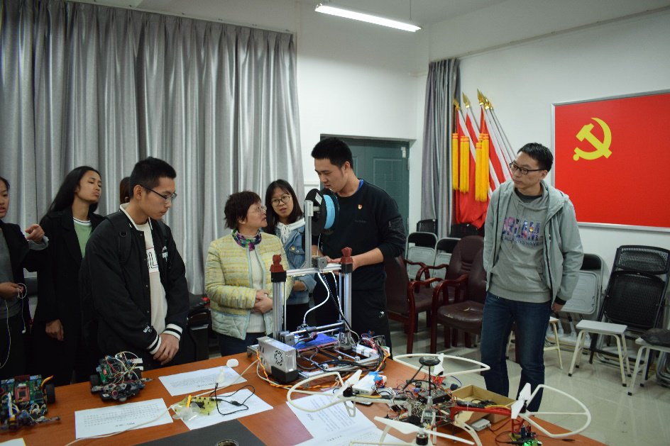 为全面学习贯彻“不忘初心、牢记使命”主题教育精神,鼓励学生参加各项科技竞赛活动,提高同学们对发明创新的积极性,信息科学与工程学院学生第四党支部全体党员于2019年11月26日在02501举办了电子展专题展览。学院党委书记江云清、副院长董明刚、副院长陆绮荣以及学工办公室全体辅导员出席本次展览,同时参加此次展览的,还有信息学院300余名学生。 活动上,我院学生第四党支部党员们向大家展示了智能车、电磁炮、电子感应器、3D打印机、无人机等作品。本次科技作品展内容丰富,覆盖面广,包含“挑战杯”全国大学生系列科技学术竞赛、全国电子设计大赛等赛事的多个优秀获奖作品,每个展位的作品都独具风格,吸引着同学驻足参观。其中,党员同志对无人机、3D打印机这两个展品现场演示和详细解说,激发了同学们的好奇心和求知欲,诠释了科技创新的魅力。党员们在现场和老师、同学们交流互动,并向大家分享开发心得。在党员们细心的讲解介绍下,同学们对科技作品及科技竞赛有了初步了解,对科技作品的工作原理和应用前景又有了更深入的了解。 本次科技作品展参展活动进一步营造了大学生科技创新的活动氛围,给予了同学们近距离接触各类科技作品的机会。此次参展活动,拓宽了同学们的科技视野,激发了同学们的科研兴趣,点燃了同学们心中的科创热情,有助于培养同学们锐意创新、敢于挑战的科学素养,树立实事求是、追求真知的科学精神。 图一 学生党员向江云清书记展示作品