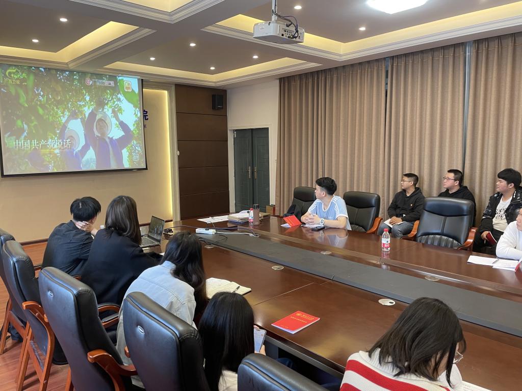 会上,彭帆同志带领支部党员和入党积极分子共同学习了习近平总书记在两会上的重要讲话,讲话贯通了历史、现在、未来,成为马克思主义中国化、时代化的最新成果,彰显了新时代中国共产党人坚定的历史自信和强烈的责任担当,为全国人民奋进新征程、夺取新胜利提供了思想武器,指明了前进方向。同时,彭帆同志还组织支部同志们集中观看了《紧跟伟大复兴领航人踔厉笃行》专题片,专题片讲述了党的十八大以来八桂大地发生的巨大变化以及取得的显著成就,充分体现了习近平总书记对广西发展的关怀与厚爱,展现了新一届自治区党委牢记领袖嘱托、勇担历史使命,团结带领5700多万各族人民紧跟伟大复兴领航人踔厉笃行、凝心聚力建设新时代中国特色社会主义壮美广西的崭新气象。