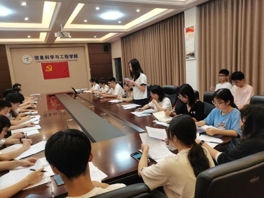 2022年6月9日晚,计算机学生第二党支部在02507会议室召开支部党员大会。支部9名正式党员、14名预备党员以及拟讨论接收的6名发展对象参加会议,会议由党支部书记蔡志勇同志主持。 按照党组织接收预备党员程序,6名发展对象依次向党组织汇报对党的认识、个人经历、在校表现以及需向党组织说明的情况,入党介绍人分别介绍发展对象的培养考察情况,并就是否同意入党发表意见。与会党员结合发展对象现实表现、作用发挥等方面情况发表意见,对其能否入党进行充分讨论,有表决权的正式党员采取无记名投票方式进行表决。经大会逐个表决,同意接收贺峻峰等6人为中共预备党员。 最后,蔡志勇同志作总结发言,他希望此次接收的预备党员不仅要在思想上入党,更要在行动上入党,在平时的学习、工作和生活中,始终以党员的标准严格要求自己,以身作则,率先垂范,充分发挥共产党员的先锋模范作用,为学院各项事业的高质量发展贡献力量。 会议现场(一) 会议现场(二)