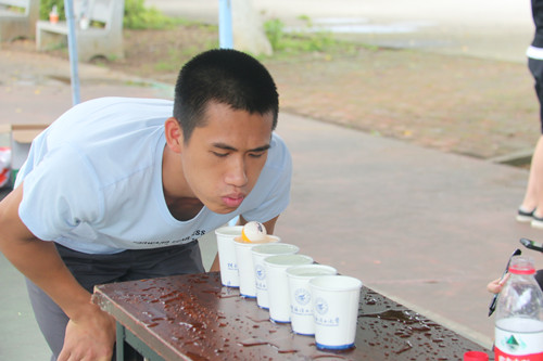 迎着清晨活力满满的暖阳,同学们也陆续参与进入游戏中。踢毽子,吹乒乓球,叠纸杯,投掷沙包,五官游戏,游戏中同学们全身心投入,充分发挥自己的特长优势,在竞技中提高自己的技能,同时欢笑声也充满着整个活动现场,他们将青春的光芒发挥到极致,将热情感染整个活动现场。通过游戏,同学们增强了体质,收获了欢乐,充分展现了大学生的积极向上的青春风貌。