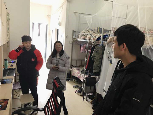 2019年1月8日,我院党委副书记刘志丽带领学院全体辅导员深入22栋、 25栋和26栋学生宿舍,了解同学们近期学习生活情况,并对宿舍卫生进行了检查和对存在安全隐患设施进行了排查。