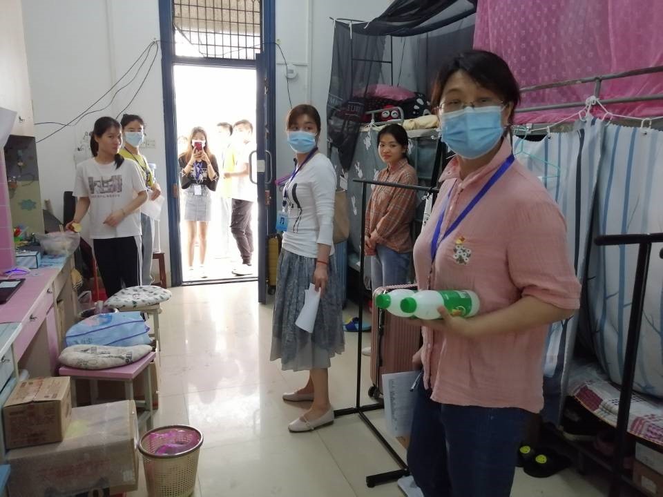 在消杀过程中,志愿者同学们逐间对宿舍地面、门把手、洗漱台、卫生间、阳台等高频接触点进行消毒,一丝不苟。宿舍同学也非常配合,并对志愿者表示感谢。学院党委副书记刘志丽带领学院全体辅导员分头到宿舍走访,勉励同学们不可松懈,共同战“疫”,加强沟通,互相理解,坚持每天做好通风、垃圾日清、湿法拖地,一起营造文明和谐、健康清洁的宿舍环境。