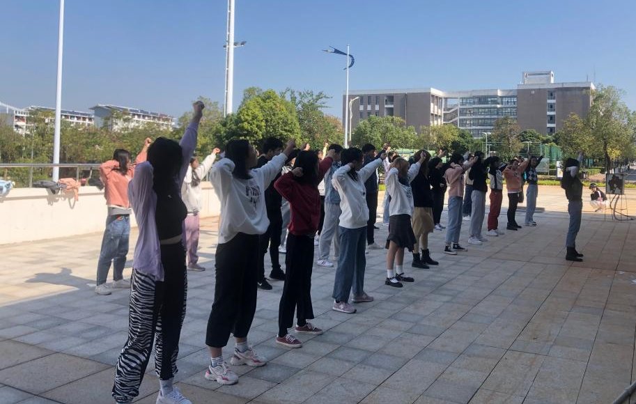 为展现我院学子朝气蓬勃的精神面貌,营造健康向上的校园文化氛围,丰富同学们课余文化生活,展现同学们的青春活力,激发同学们积极参与体育文化活动的激情,提高运动技能水平。 我院积极组织开展桂林理工大学2020年"绽放青春光彩"校园啦啦操备赛工作,全院各年级学生积极报名参加,9日晚经过初选确定蒙丽菲等42位同学通过选拔进入啦啦操队,10日中午经过专业教练考核复选、成功组建2支啦啦操队,目前2支队伍正处于积极训练和备赛阶段。 此次选拔为我院啦啦操队输送优秀人才,同时展现出我院学子是德、智、体、美、劳全面发展的复合型人才。最后预祝我院在本届校园啦啦操大赛中取得优异成绩! 啦啦操队员选拔现场