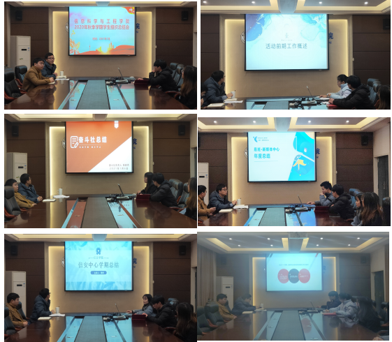 信息科学与工程学院于2021年1月6日下午在雁山校区02507会议室开展2020年秋季学期学生组织总结大会,学院团委副书记李艮、王发,团委学生会、易班新媒体中心、奋斗社、龙师协会、信安中心等各学生组织负责人参加,会议由李艮老师主持。 会上,团委学生会代表李杰、潘天乐、学生组织代表庄信永、杨春秀、冯桂华、黄希分别做工作汇报,各学生组织通过图片和文字集中展示了本学期举办的活动和工作成果,并重点探讨了工作中存在的问题和不足,为下一步的工作提供思路和方向。 李艮老师充分肯定了一年来学院各学生组织取得的成果,对大家的辛苦付出表示感谢。他从学生组织的思想建设、组织建设、制度建设、队伍建设、特色活动等方面作了重点解读,并鼓励大家在今后的工作中要深化组织改革,不断提升组织力和凝聚力;学会独立思考,提升解决问题的能力;注重工作落实,强化履职尽责的能力。 本次会议增强了学院各学生组织之间的联系,系统总结了前期工作经验,强化了责任意识和服务意识,各学生组织将以此次总结会为契机,以实事求是、砥砺奋进的态度,不断前进! 会议现场