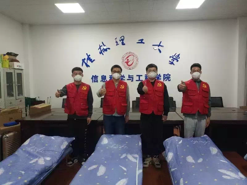目前桂林市和学校疫情防控形势严峻复杂,为进一步充实疫情防控力量,筑牢疫情防控底线,学院学工办党员闻令而动,积极投身校园防控一线,为抗疫工作注入强劲“红色防疫力量”。学工办党员积极响应学校号召,“疫”无反顾,主动投身屏风校区疫情防控一线工作。 学工党员合影 学工党员志愿者办公室合影 学工办李雪老师正在打包学生午餐
