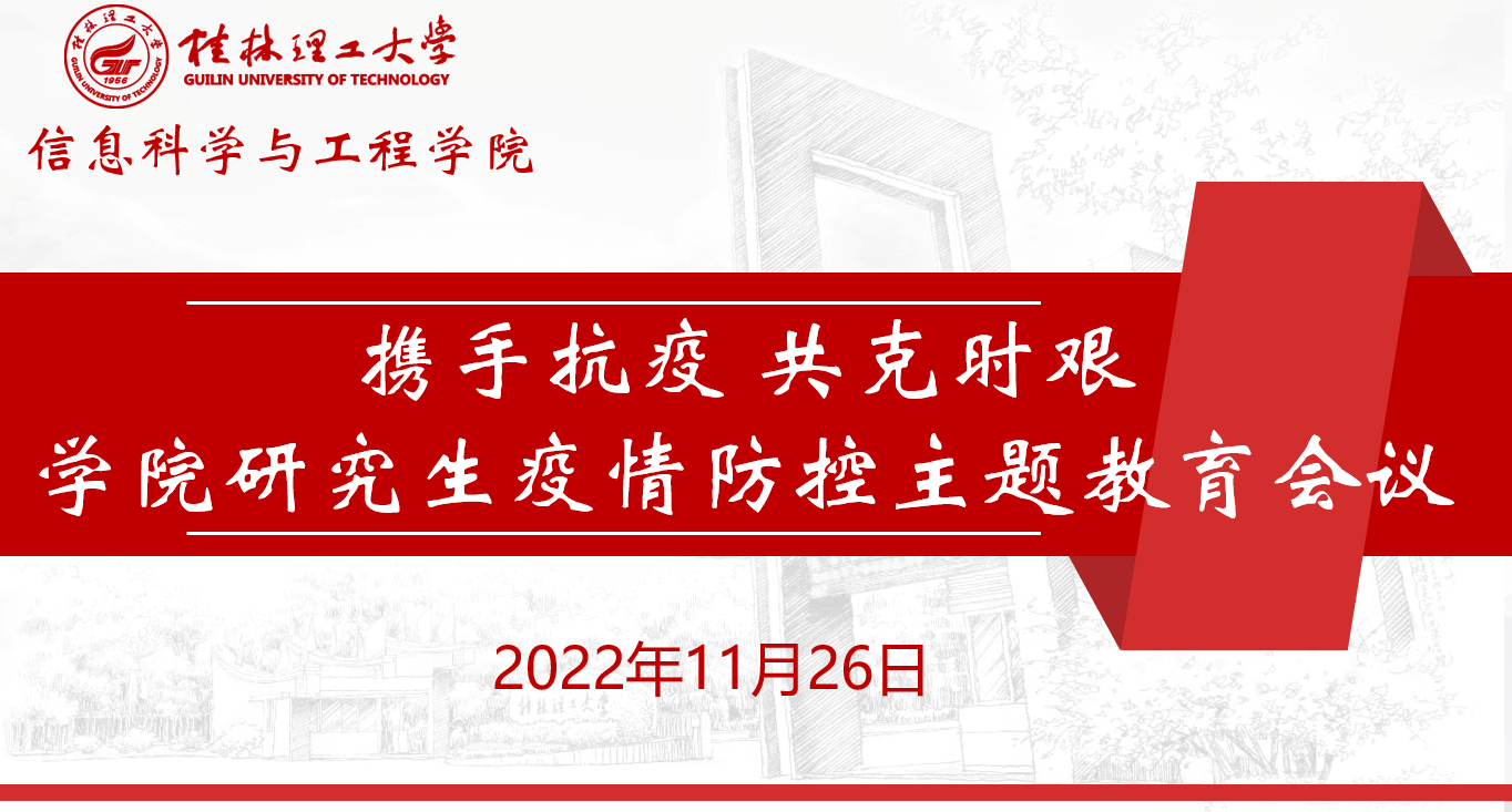 为保证全体师生的生命安全和身体健康,维护校园安全,11月26日晚,学院在线上召开研究生疫情防控工作专题会议。学院党委书记江云清、院长谢晓兰、副书记宋玉辉、副院长董明刚等参加此次会议。 会上,江云清书记着重传达了学校有关疫情防控工作会议精神,希望研究生们提高政治站位,统一思想认识,共克时艰,为早日战胜疫情作出应有贡献。董明刚副院长强调了疫情期间如何做到停课不停学,努力完成好学习研究工作任务,把疫情带来的影响降低到最低限度。宋玉辉副书记强调了防疫工作纪律和要求,希望大家做到守土有责,守土尽责。此次会议对全体研究生提出以下四项要求: 一要做科学防护的带头人。自觉并严格遵守学校的疫情防控政策,主动做好核酸检测。在校园内科学佩戴口罩,保持安全社交距离,减少各类聚集性活动。主动配合做好各项排查和统计工作,不漏报、不迟报、不瞒报、不谎报。如有出现发热、咳嗽、腹泻、乏力等症状,第一时间联系辅导员或班主任,按照学校相关规定进行处置。 二要做疫情防控的宣传员。通过官方权威渠道了解疫情通报和健康知识,主动学习宣传疫情防控知识,不信谣、不造谣、不传谣,遵守防疫规定、坚持健康生活、加强自我防护。 三要做同心抗疫的志愿者。在保证自身健康安全的情况下,积极行动起来,充分发挥先锋模范作用,主动报名参加校内疫情防控志愿者,积极参与后勤保障、秩序维护、物资清运、岗位值守等工作,锻炼自我、服务他人,为疫情防控取得最终胜利贡献积极力量。 四要做优良学风和健康生活的引领者。调整心态和节奏,积极应对学习方式和生活方式的转变。不放松学习要求,提高学习标准,按时参加网课,高质量完成各项学习任务。养成良好卫生习惯,做到勤消毒、常清洁、勤洗手,定期进行室内通风换气。坚持科学锻炼,定期到户外进行体育运动,保证充足睡眠,保持规律作息,引领校园健康生活风尚。 与会同学们纷纷表示一定严格遵守各项防控纪律要求,团结一心、共克时艰,努力为坚决打赢疫情防控阻击战、攻坚战作出积极贡献。