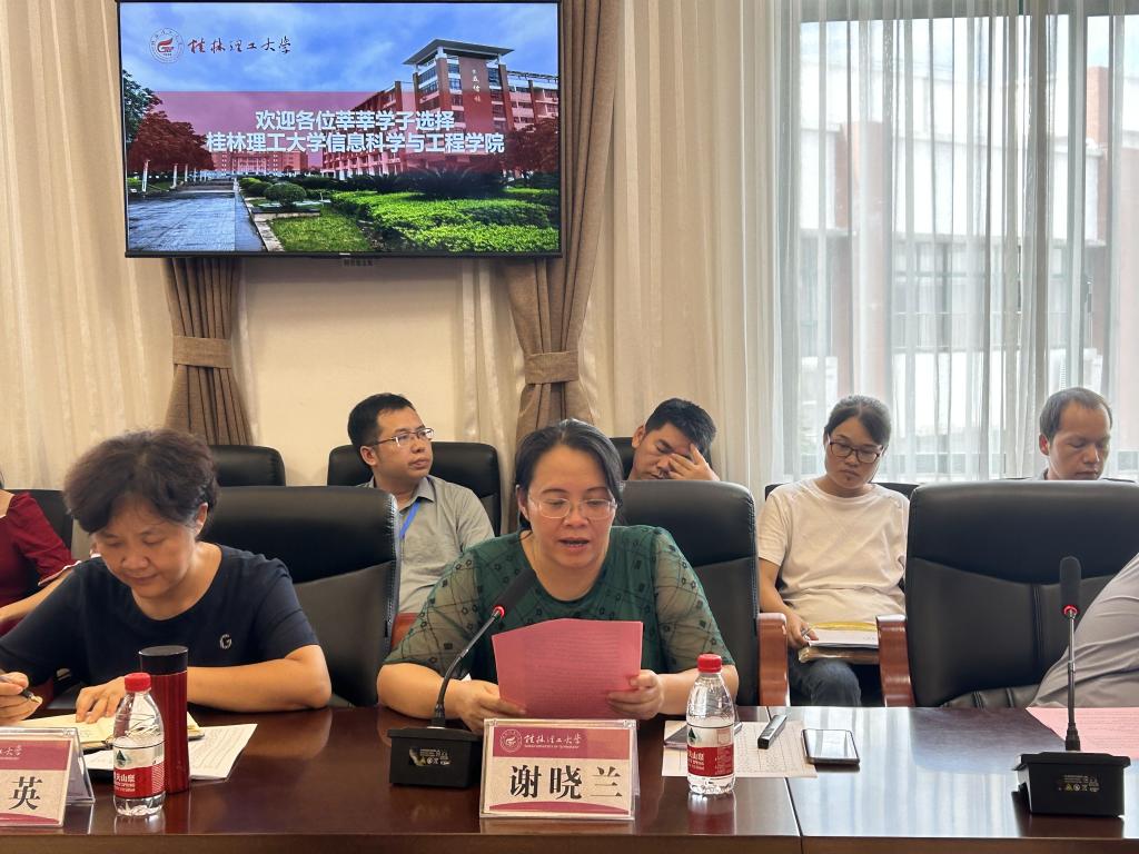 为进一步搭建家校沟通桥梁,凝聚家校育人力量,更好地助力学生成长成才。9月10日下午,学院在雁山校区02507会议室召开2023级新生家长见面会。学院领导熊英、谢晓兰、宋玉辉、董明刚、邓昀、邓健志出席会议,专业负责人、2023级班主任、2023级辅导员以及60余名新生家长参加本次见面会。会议由邓昀主持。