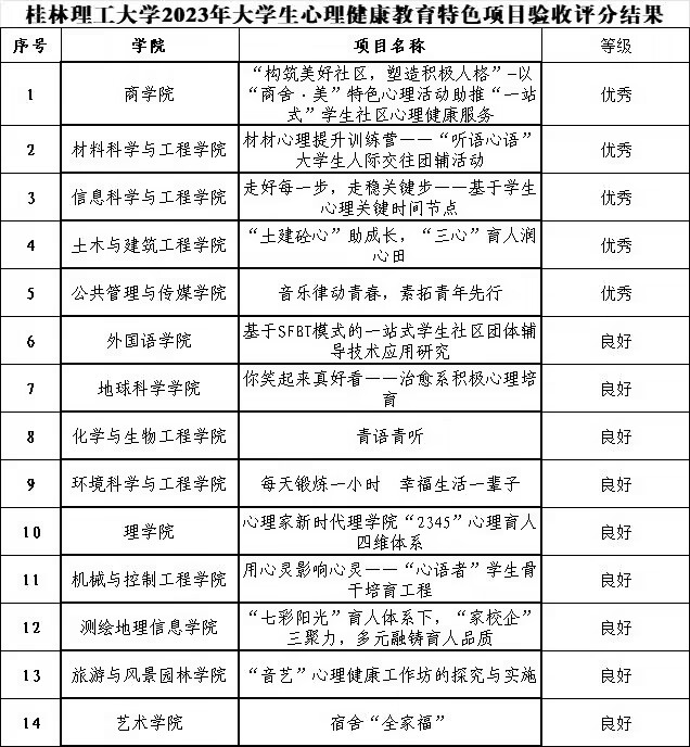 喜报|学院2023年大学生心理健康教育特色项目获评学校“优秀”等级