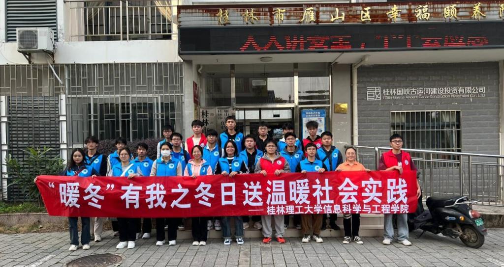 尊老为德,敬老为善,爱老为美,助老为乐,为弘扬孝亲敬老的中华传统美德,11月18日下午,学院组织30余名志愿者前往桂林市雁山区幸福颐养院开展“‘暖冬’有我之冬日送温暖社会实践”志愿服务活动。 活动中,志愿者和老人谈心、拉家常,陪老人散步、一起娱乐,为老人捶背捏脚、关心老人的身体健康,了解老人们在敬老院中的日常生活和需求,主要帮助老人收拾屋子,打扫卫生,陪老人们一同看电视、一起分享观看心得。与此同时,志愿者们还根据学院的专业特色,手把手教学,帮助老人们解决面对使用智能手机时遇到的困难,让老人们享受智能手机带来的便捷。 此次活动不仅丰富了敬老院老人们的精神文化生活,还让同学们切身体会敬老爱老这一中华民族传统美德的重要意义,增强了同学们的社会责任感和志愿服务意识。今后,学院将继续开展孝亲敬老志愿服务活动,弘扬中华民族传统美德,让敬老之风持续传递。 志愿服务活动现场 活动合影