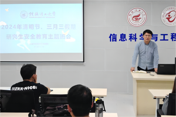 在2024年清明节、“三月三”假期到来之际,为切实增强研究生的安全意识,防范安全事故的发生,确保度过平安、愉快的假期。学院于3月28日在02525教室举行了清明节、“三月三”假期安全教育主题班会,本次班会由研究生辅导员蔡志勇老师主持,全体研究生参加。