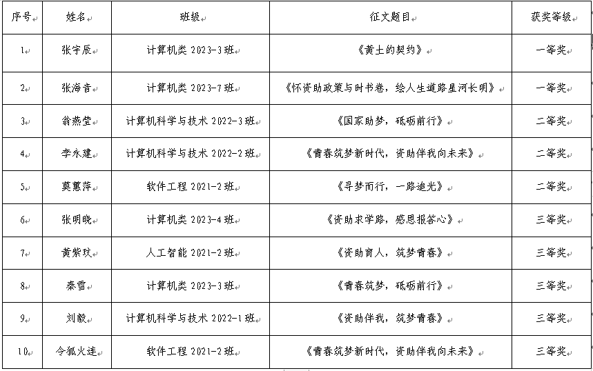 资助主题征文比赛获奖名单