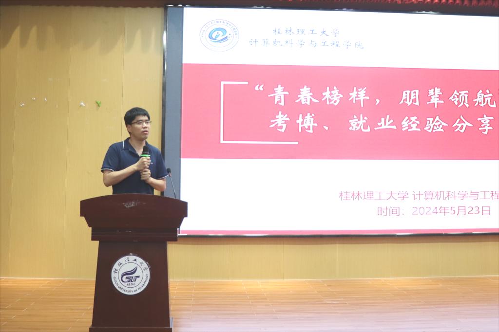 为进一步营造良好学术氛围,引导同学们合理规划职业生涯,激发同学们的科研兴趣与创新潜能,学院研究生会于5月23日下午在雁山校区图书馆报告厅举办了“青春榜样,朋辈领航”科研、考博、就业经验分享交流会。会议邀请了邹健、柳庆龙、王陆斌、邹海涛和刘榕鑫学长五位学长通过线上线下相结合的方式分享自己在科研、考博和就业方面的经验。学院副院长敬超、研究生教学秘书马艳青和研究生辅导员蔡志勇出席本次会议,学院2022级、2023级研究生参加。