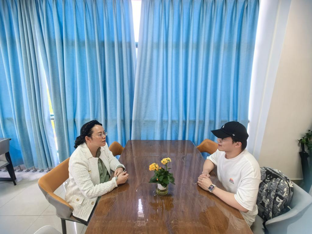 2024年5月13日,我院院长谢晓兰在学工组长孟德的陪同下亲切慰问考研学子。在考研自习室,她详细了解周航的考研情况,周航是我院软件工程专业2020级2班的学生,今年顺利考上上海大学硕士研究生。谢院长对他表示祝贺。同时,她希望周航能继续保持积极向上的学习状态,今后有时间常回母校看看。 谢院长表示,学院一直高度重视考研工作,将全力支持考研学生的备考。她强调,学院会为学生提供必要的帮助和保障,如提供安静的自习室、组织模拟考试、邀请专家进行辅导等。 谢晓兰院长与考研学生代表周航谈话 合影 (一审:孟德;二审:黎超业;三审:熊英)