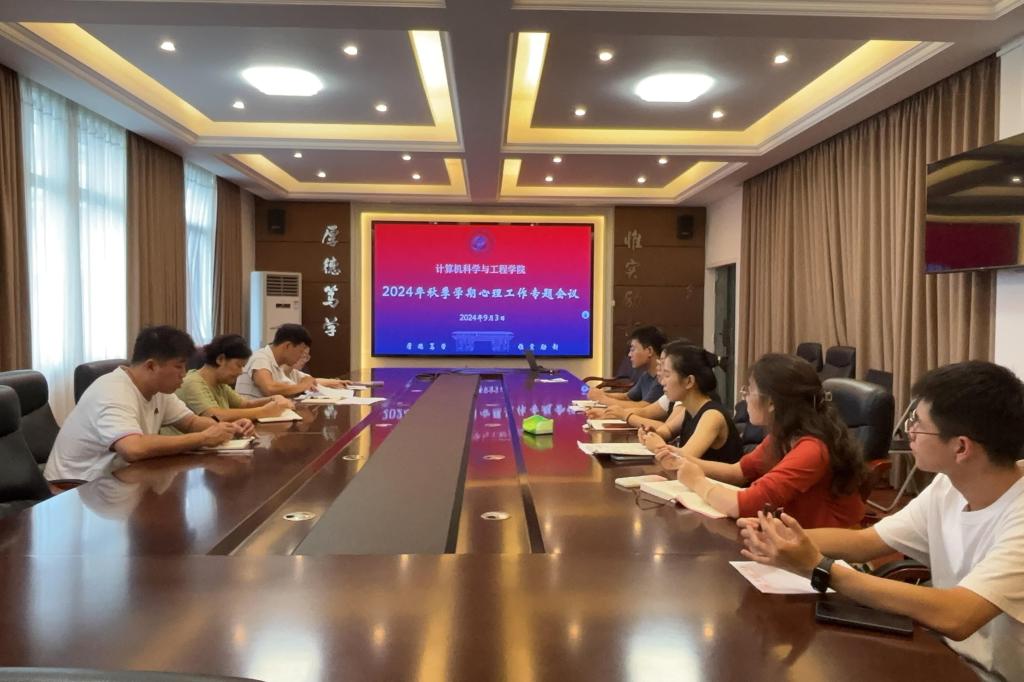 为加强大学生心理健康管理,减少学生心理危机事件的发生,确保校园的安全稳定,9月3日,学院在02507会议室召开2024年秋季学期心理工作专题会议,学院党委书记熊英出席会议并讲话,会议由学院党委副书记黎超业主持,学院全体专兼职辅导员参加会议。
