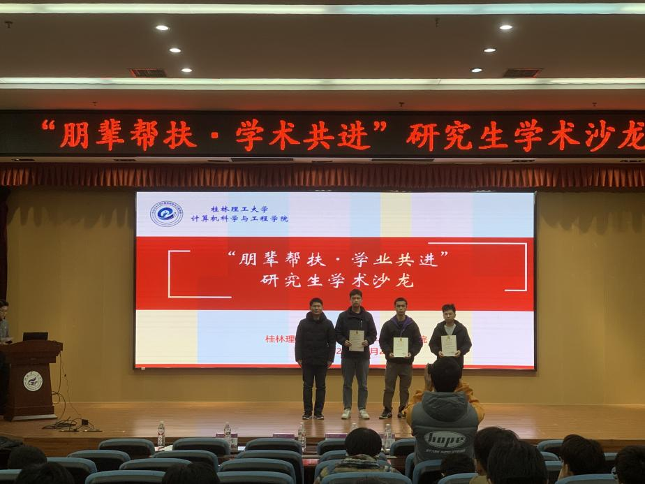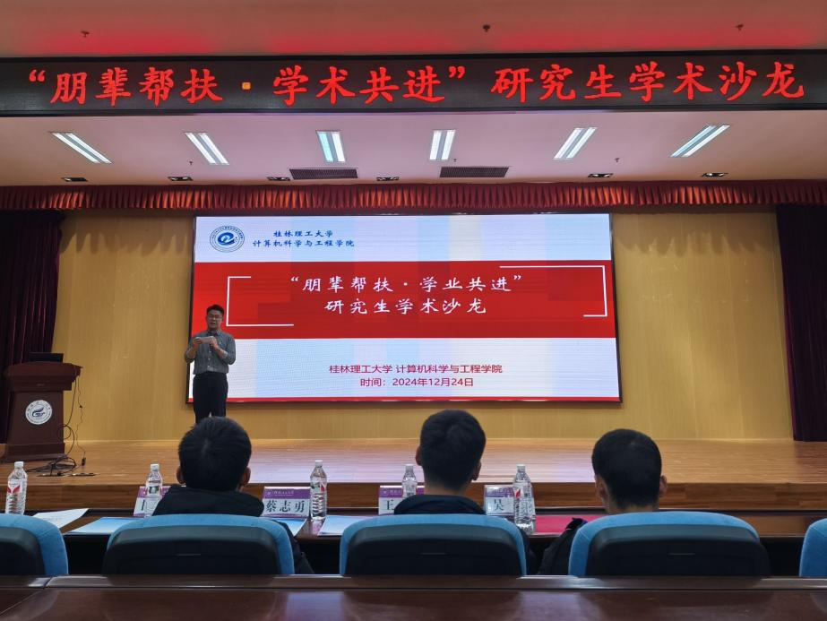 为促进学院研究生学术成长,培育深厚学术素养,营造浓郁学术氛围,12月24日晚,学院于雁山校区图书馆报告厅举办“朋辈帮扶·学业共进”研究生学术沙龙活动。活动特邀王子健、吴佑、甘玉生三位学长参加,倾囊相授学术成果与科研心得。研究生辅导员蔡志勇出席本次活动,学院研一、研二全体研究生参加。 活动伊始,王子健、吴佑、甘玉生三位学长立足各自研究专长,从多元专业视角出发,毫无保留地分享了他们在学术道路上的宝贵收获。王子健学长通过实际案例详细解读了研究过程中的关键节点与突破方法;吴佑学长深入浅出地阐述了如何在复杂的研究领域中找准方向、解决问题;甘玉生学长则凭借扎实的数据和深入的分析,为同学们展现了学术探索的严谨与魅力。分享过程中设置了游戏互动环节,现场气氛活跃。在随后的面对面提问交流环节,研究生们围绕学术研究中的诸多问题,如实验设计、数据分析、论文撰写、工具使用等向学长们提问。学长们一一耐心解答,交流氛围热烈而融洽,许多长期困扰同学们的实际困惑在这一问一答中迎刃而解。活动最后,蔡老师为三位学长颁发活动证明,以表彰他们在本次活动中的无私分享,同时也激励更多同学积极投身学术研究,相互学习,共同进步。 本次研究生学术沙龙活动的圆满举办,有力促进了学院不同年级学生间的学术交融与互动。不仅拓宽了学生的学术视野,也为学院的学术文化建设添上了浓墨重彩的一笔。期待研究生们能够将此次活动中的所学、所悟、所获,切实转化为实际的学术成果,在学术探索的道路上稳步前行,续写更多辉煌篇章。