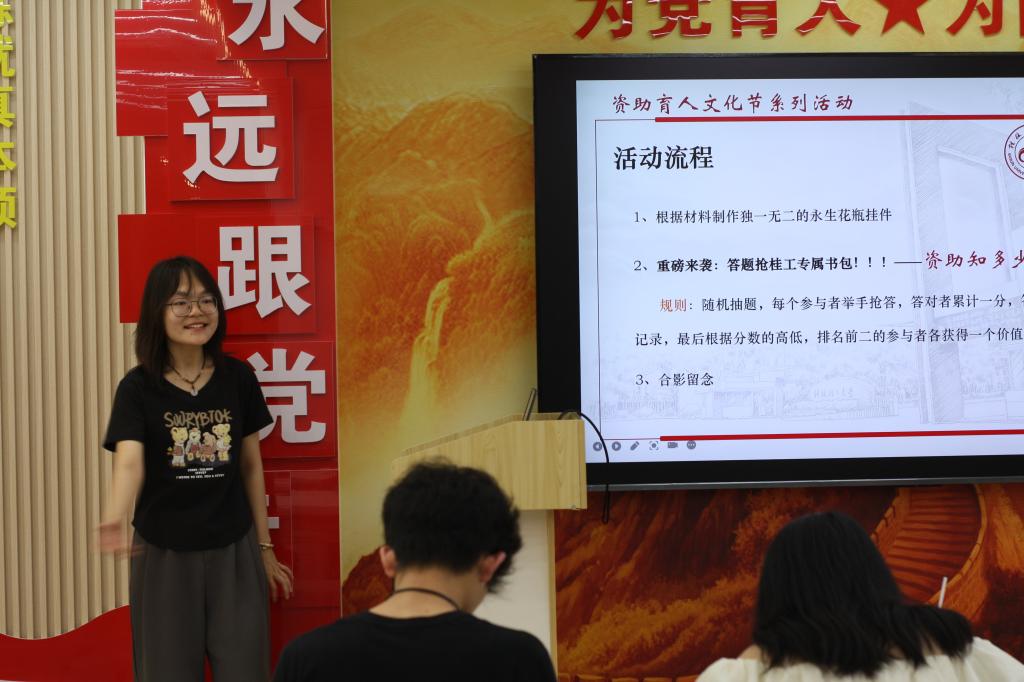 为深化资助育人文化内涵,丰富学生校园生活,5月20日晚,英国上市公司365在一站式学生社区思政大讲堂顺利开展了资助育人文化节之“春日手工 DIY+资助知识问答”活动。本次活动由学院奋斗社策划组织,吸引了多名同学积极参与,现场氛围温馨热烈。 活动现场,参与者使用永生花、干花、流苏等材料,制作独一无二的春日书签摆件。同学们充分发挥创意与巧思,将春天的美好定格在瓶中,既体验了手工制作的乐趣,也感受到艺术的魅力。此外,现场还特别设立了“资助知识盲盒区”,参与者通过解答关于国家奖学金、勤工俭学、助学贷款等资助政策的问题,进一步加深了对资助知识的了解。完成答题的同学还获得了贴纸、书签、定制书包等精美礼品,让活动既充满趣味性,又兼具教育意义。 本次活动的成功举办,不仅为同学们提供了一个放松身心、展示创意的平台,还通过寓教于乐的方式普及了资助政策,让同学们在轻松愉快的氛围中感受到国家与学校的关怀与支持。未来,学院将继续创新活动形式,推动资助育人工作与校园文化深度融合,为学生的成长成才营造更加温暖向上的环境。 主持人介绍活动流程(一) 活动现场(二) 合影(三) (一审:劳家宝;二审:孟德;三审:黎超业)