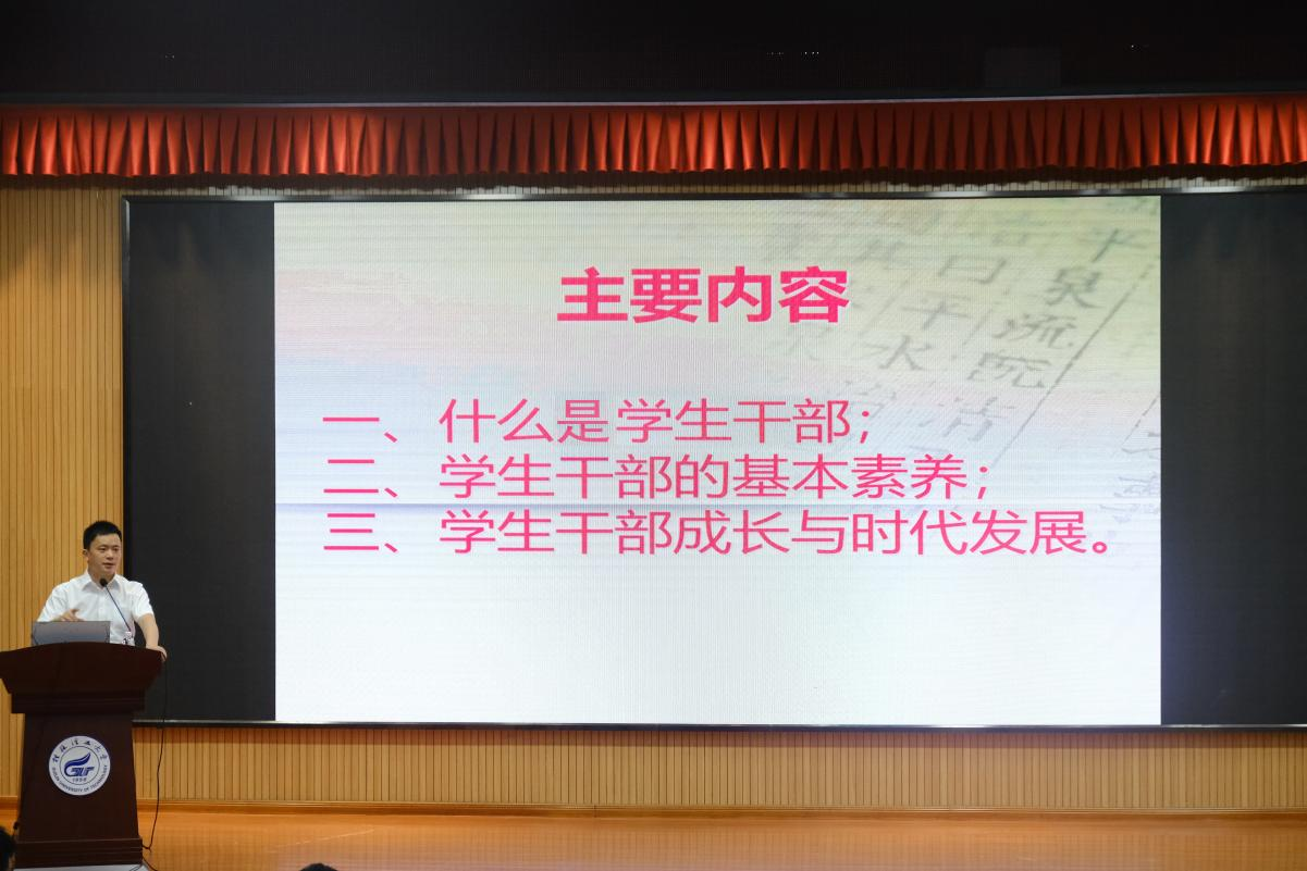 为提升学生干部的能力和素养,发挥学生干部的榜样引领作用。6月3日晚学院在雁山校区图书馆报告厅举办学生干部成长与时代发展专题讲座,学校人事处副处长、人才工作办公室副主任邓炼应邀做专题辅导讲座,学院全体辅导员,全体学生骨干参加了本次讲座。 邓炼老师结合自身工作经历,从什么是学生干部、学生干部的基本素养和学生干部成长与时代发展三个方面展开,引用多个与学生干部管理相关的典型事例,分享了若干名学生干部的优秀事迹,用生动的语言阐释了作为一名学生干部应有的责任与担当。他强调学生干部应具备“六有”,即心中有爱、肩上有担、腹中有墨、胸中有识、目中有人、手中有艺。另外,他还对学生干部的学习、日常礼仪规范和仪容仪表等方面作了详细而生动的讲解。 培训会上,全体学生干部认真听讲,积极互动。纷纷表示通过此次培训受益匪浅,对自己的工作有了更深层次的思考,进一步明确了自己的身份,强化了责任担当意识,对在新时代发展中如何成为一名优秀的学生干部有了更清晰的目标和方向。通过此次培训,学生干部在以后的学习工作中将充分发挥才能,更好地为学院师生服务。 讲座现场 讲座合影