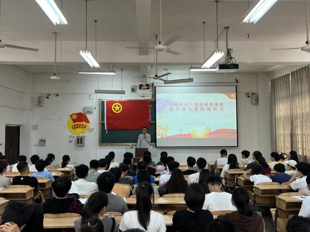为深入学习贯彻习近平新时代中国特色社会主义思想和党的二十大报告,认真贯彻落实习近平总书记关于青年工作的重要思想,加强对青年大学生的思想政治引领,10月25日在雁山校区06104教室举行了2022年秋季学期青年马克思主义者培养工程大学生骨干培训班,学院团委李艮老师主讲,学院团委、学生会、各年级团支书参加此次培训班。 会上,李艮带领大家学习党的二十大报告,习近平总书记在党的二十大报告中指出:“广大青年要坚定不移听党话、跟党走,怀抱梦想又脚踏实地,敢想敢为又善作善成,立志做有理想、敢担当、能吃苦、肯奋斗的新时代好青年,让青春在全面建设社会主义现代化国家的火热实践中绽放绚丽之花。”同学们表示将牢记习近平总书记的嘱托,坚定理想信念,不断提高学生骨干的思想政治素养、政策理论水平和实践能力,真正发挥青年学生骨干的模范带头作用。 随后,李艮以“加强新时代团的基层建设,着力提升团的组织力”为主题,从加强团的基层建设的重要性和紧迫性;指导思想、工作目标和基本原则;聚焦提升团的组织力,不断扩大团的基层有效覆盖;聚焦育人根本任务,全面加强团员队伍建设;聚焦忠诚担当,从严从实推进团干部队伍建设;坚持改革创新,着力提升基层建设的科学化水平六个方面展开培训。他希望同学们遵守培训班纪律,学以致用、学有所成、学有所获,不断成长为一名坚定的马克思主义者。 会议现场(一) 会议现场(二)