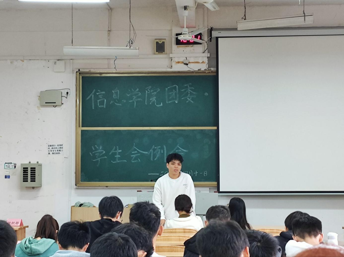 4月11日中午,学院团委学生会2023年春季学期第八次全体例会在雁山校区06104教室顺利召开。此次会议由学院学生会主席团成员李康安主持,学院团委书记于帅帅老师、团委副书记崔之府老师出席本次例会,学生会全体成员参加本次例会。 会议开始,于帅帅老师发表重要讲话,他强调主席团成员以及各部门要处理好和下属之间的关系,加强沟通交流,互相学习进步。随后,学生会各部门汇报上一周工作情况以及下一周计划,各部门将协调配合,筹备“桂工杯”篮球赛的各项事宜。会议的最后,由学生会主席团成员李康安对本次会议进行总结,强调学生会既要指导各下属部门工作,又要给予各部门足够的自我发展空间,更好地调动他们的积极性。 本次例会的召开,促进了主席团与学生会干事的协调配合,有助于学生会的长足发展。 学院学生会主席团成员李康安主持例会