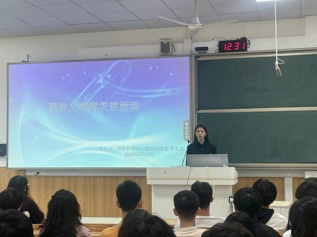 4月25日,为加深学生对艾滋病的了解,倡导健康的生活方式,学院团委·学生会举办“了解艾滋,珍爱生命”公益活动。 此次活动内容丰富、形式多样,吸引了一百多名同学参与进来。在主题讲座中,学生对艾滋病的传播途径、预防措施和治疗方法有了更加深入的了解,使同学们深刻地认识到了保护自己,预防艾滋病的重要性。在互动问答环节,同学们积极提问,消除了自己关于艾滋病知识的疑惑。活动最后,工作人员向学生发放了相关的宣传材料和小礼品,鼓励大家将所学知识传递给更多的人,共同为预防艾滋病做出努力。 通过此次活动,同学们不仅掌握了预防艾滋病的相关知识,更学会了尊重和珍惜生命。 活动现场