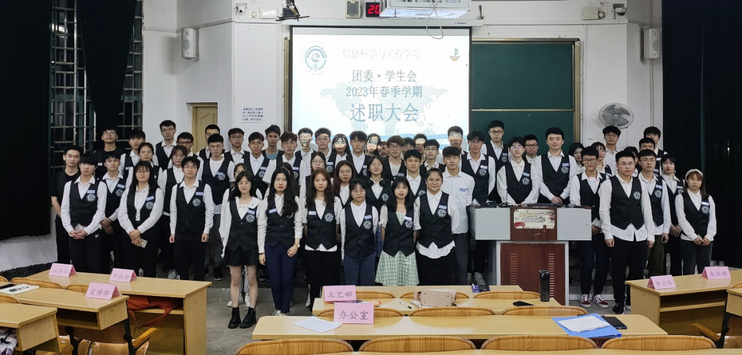 为进一步加强学院学生会自身建设,增强学生会干部的自我教育、自我管理、自我服务、自我监督的意识,提高学生会干部队伍的整体素质。6月23日,学院在05306举办2023年春季学期学生会述职大会。学院团委书记于帅帅、团委副书记崔之府、全体学生会成员参加会议。 学生会主席团、组织部、体育部、文艺部等十个部门以PPT展示的形式,从思想引领、部门建设、部门总结,未来展望四个方面进行了述职。最后,于帅帅对述职情况进行了点评,对2023年春季学期学生会工作给予了充分的肯定,并强调全体成员要在工作中着眼大局的同时,更加注重细节,加强钻研精神,以更高的要求严格对待工作,发挥大家的想象力、创造力,要努力打造学院品牌,牢记初心使命,通过学生会这个平台充分展示自我。 本次述职大会增强了各位学生干部的责任意识和反思意识,调动了学生干部们工作的积极性和主动性,同时为学生会各部门和青年志愿者协会展示风采、交流学习提供了机会和平台。