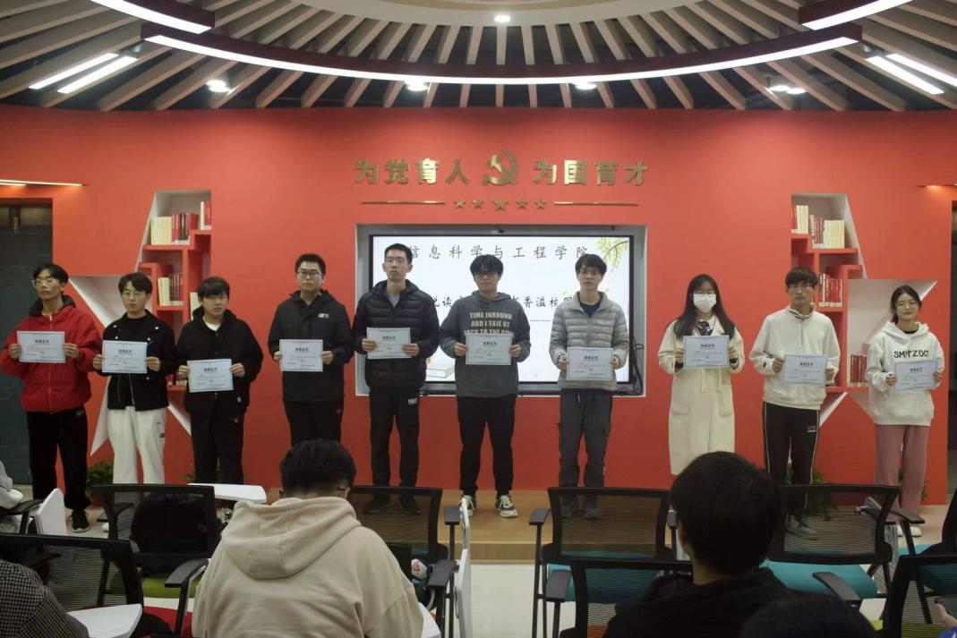 为深入学习贯彻习近平新时代中国特色社会主义思想,切实提高同学们的理论文化水平,以庆祝67周年校庆为契机,营造积极向上、清新高雅的学习氛围,11月15日晚,学院团委·学生会在17栋嘉园一站式学生社区思政大讲堂举办“悦读立芳华,书香溢校园”专题读书分享会,辅导员韦桂娥老师受邀出席了本次活动。 会上,胡彦龙、魏满意等10名入团积极分子结合自己的学习和阅读经历进行了读书分享。赵胜同学说:“通过品读《习近平的七年知青岁月》,我得以从小故事中读出大道理,得以从口述史中洞察大时代,得以从真情怀中感悟大担当,得以从奋斗史中汲取大智慧。通过了解习近平总书记的青年时期,我学习到了他能吃苦,有追求,爱学习,办实事,重辩证,敢担当的宝贵品质。我们当见贤思齐焉,应心怀‘国之大者’并争做时代新青年。”翁燕莹同学说:“《习近平与大学生朋友们》中收录了25篇访谈实录,讲述了1983年12月至2019年7月间,习近平同志在正定、厦门、宁德、福州、浙江、上海和到中央工作以来与大学生们交望交流交心的故事,让青年开悟明理、坚定正确方向的高超艺术;真切感受青年学子崇敬爱戴领袖,坚定理想信念、培育高尚品格、练就过硬本领、勇于创新创造、矢志艰苦奋斗的躬行实践。” 学习贯彻习近平新时代中国特色社会主义思想是当前和今后一个时期的重要任务,本次读书分享会主题鲜明、内容丰富,读出了坚定、读出了信仰、读出了担当,广大学生深受启发和鼓舞,纷纷表示作为新时代接班人,应努力做到知行合一,将自身力量融入中华民族伟大复兴的洪流中,以书做载,传承不缀,见贤思齐,用真挚的话语讴歌新时代。 入团积极分子赵胜同学分享读书心得